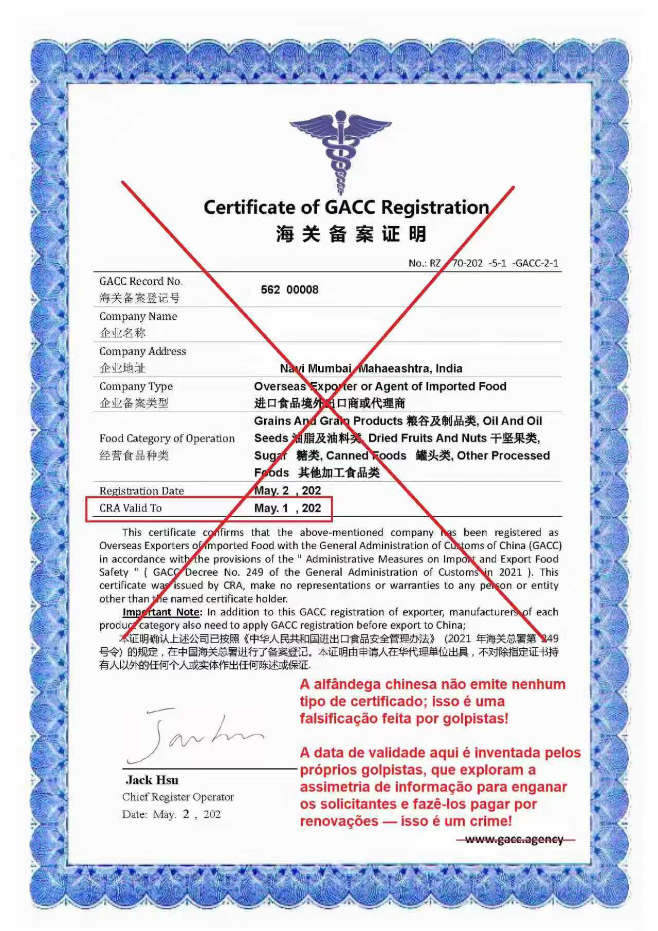 3. Fazer seus próprios certificados e tentar cobrar taxas todo ano (a alfândega chinesa não emite certificados, e não há limite de validade para qualificações de registro de exportador. Este é um ato criminoso óbvio contra requerentes estrangeiros, aproveitando a assimetria de informações)
